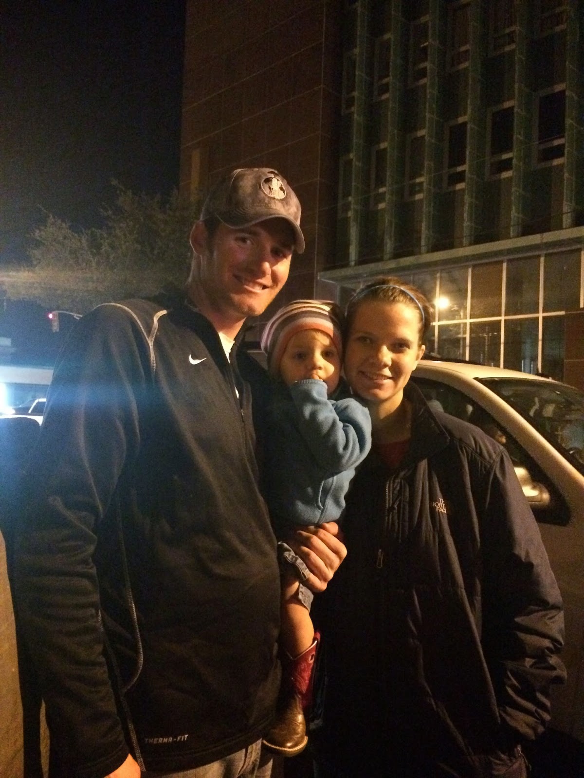 One morning we woke Adleigh up bright and early to go run a race with us. It was only $10 more for the Family to run than just Brian to run. But since I was pregnant and hadn't ran much I opted to do the Mile race and Brian did the 5K.